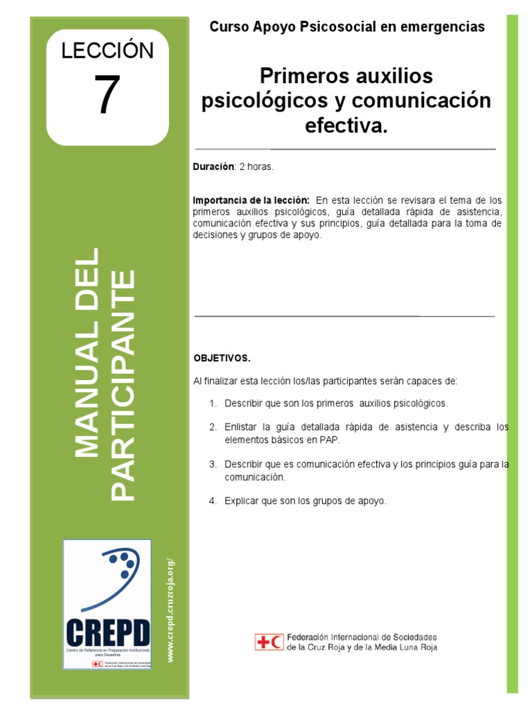 Guía para intervinientes de la oms en ella encontramos como realizar los primeros cuidados psicológicos básicos tras un hecho.