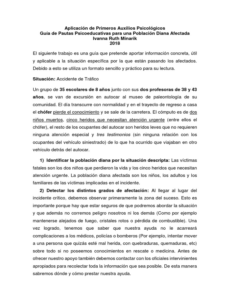 Esta guía trata de la primera ayuda psicológica un modo práctico y humano para ayudar y apoyar a nuestros semejantes en graves situaciones de crisis. Guía de pautas psicoeducativas para accidente de trafico con menores involucrados jonathan valderrama valencia junio 2016 suceso. Wvi publicaron en 2011 una guía sobre los primeros auxilios psicológicos. Adquirir las competencias para aplicar los.