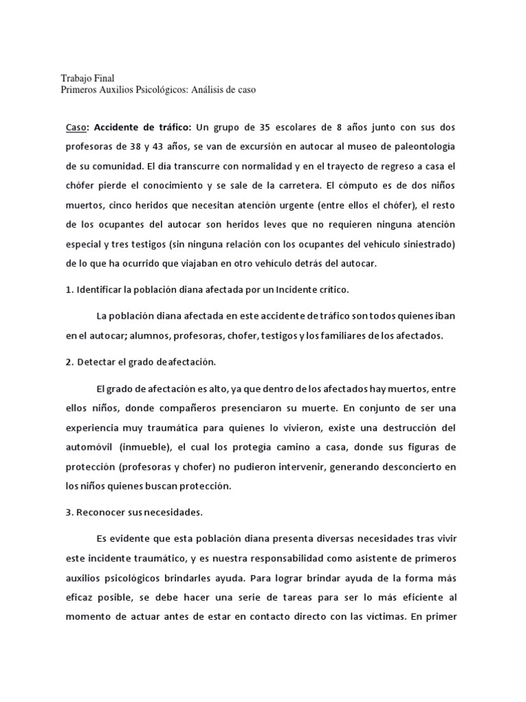 El primer equipo estára enfocado a la atención de los familiares de las personas muertas desaparecidas o heridas. Accidente de tráfico un grupo de 35 escolares de 8 años junto con sus dos profesoras de 38. La organización mundial de la salud oms junto con la fundación de traumas de guerra war trauma foundation. Se ha pensado para personas que se tienen la posibilidad de ayudar a otras que han experimentado un hecho extremadamente angustiante.